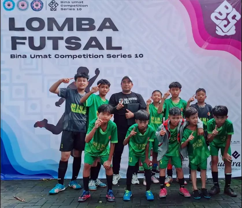 Kemenag Sleman News (MIN 2 Sleman) – Tim futsal MIN 2 Sleman menorehkan juara 1 setelah mengikuti lomba yang diadakan oleh Bina Umat Competition (BUC) series 10 DIY-Jateng. Lomba dilaksanakan di lapangan futsal Samapta Moyudan Sleman.