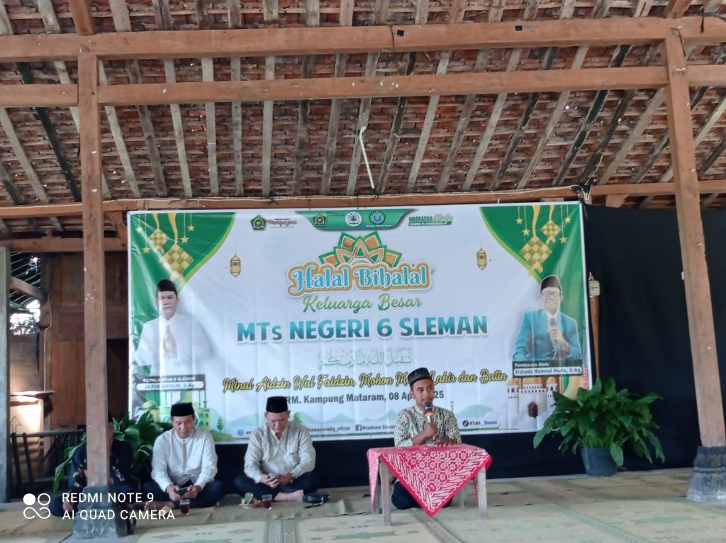 Kemenag Sleman News (MTsN 6 Sleman)– Keluarga Besar MTsN 6 Sleman gelar Halalbihalal pada hari Selasa (8/4/2025) di RM Kampoeng Mataram. Hadir pada acara tersebut seluruh Guru dan Tenaga Kependidikan beserta seluruh keluarga. Tausiyah pada acara halal bi halal ustadz Komrul Huda dari penyuluh agama islam Pakem.
