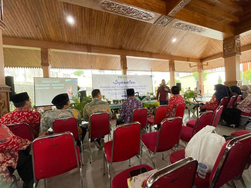 Kemenag Sleman News (MTsN 4 Sleman) – Pengurus Musyawarah Kerja Kepala Sekolah (MKKS) Kapanewon Sleman sukses menyelenggarakan kegiatan syawalan bagi pendidik dan tenaga kependidikan se-Pokja Kapanewon Sleman, Jumat (11/4/2025). Acara yang bertajuk “Mempererat Persaudaraan untuk Mewujudkan Insan yang RAMAH (Responsif, Akuntabel, Mandiri, Adaptif, Harmonis)” ini dilangsungkan dengan penuh khidmat dan kekeluargaan di Pendopo DPRD Kabupaten Sleman.
