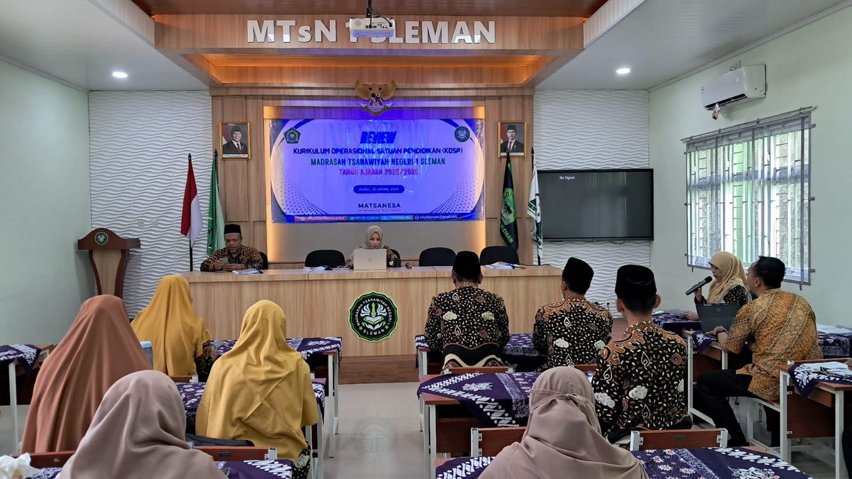 Kemenag Sleman News (MTsN 1 Sleman) – Dalam upaya meningkatkan mutu pendidikan dan kesesuaian kurikulum dengan perkembangan zaman, MTs Negeri 1 Sleman melaksanakan kegiatan Review Kurikulum Madrasah pada Rabu (30/04/2025). Kegiatan berlangsung di ruang pertemuan MTs Negeri 1 Sleman dan diikuti oleh seluruh guru serta tenaga kependidikan madrasah.