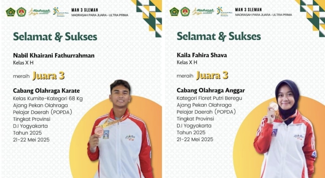 Kepala MAN 3 Sleman, Moh. Fadlil Afif, Lc, mengapresiasi dan merasa bersyukur atas keberhasilan 2 putra Mayoga meraih juara di ajang bergengsi yang diselenggarakan oleh Dikpora tersebut. Walaupun belum berhasil menjadi duta Yogyakarta di ajang Nasional, prestasi yang diraih saat ini telah membanggakan dan hendaknya bisa menjadi motivasi baik bagi siswa yang berprestasi, pun bagi teman-teman yang memiliki potensi dan bakat di bidangnya baik akademik maupun non akademik. (isn)