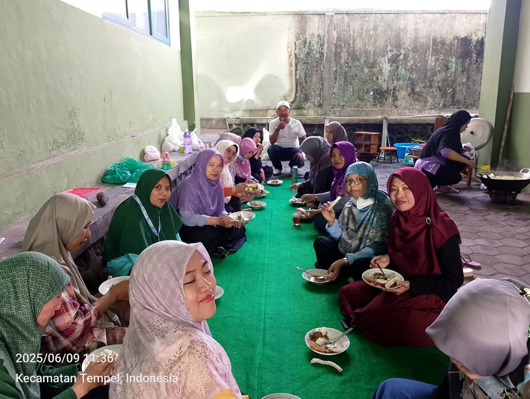 Sementara itu, Ketua Panitia, Mudrikah, M.Pd.I., mengungkapkan bahwa kegiatan qurban tahun ini juga diwarnai dengan makan bersama yang menyajikan berbagai olahan daging seperti rawon, tengkleng, dan sate goreng, dilengkapi dengan lotis buah dan es segar. “Makan bersama sambil bercengkerama menciptakan suasana hangat dan kompak di antara warga madrasah,” tuturnya.