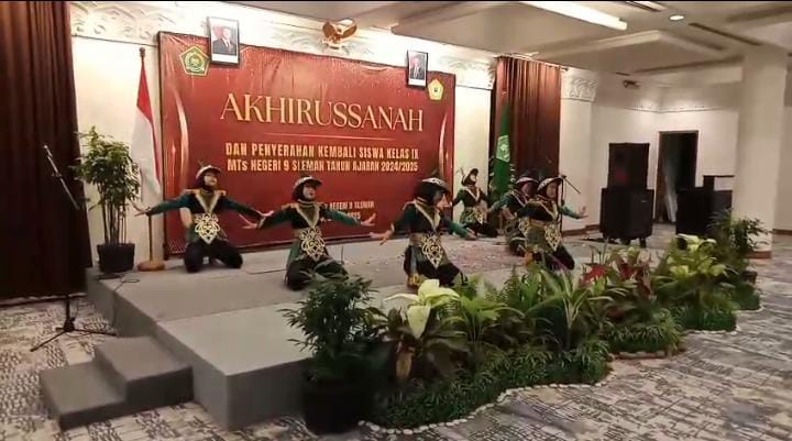 Tari Angguk Angglang menjadi salah satu penampilan yang menarik antusiasme yang hadir dalam Akhirusanah pada Senin (2/6/2025) bertempat di Hotel Diamond Yogyakarta, sekaligus menegaskan komitmen MTsN 9 Sleman dalam menanamkan cinta budaya kepada para siswanya. (Ik)
