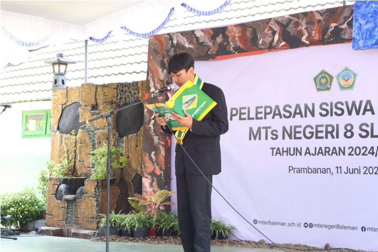 Ikrar Alumni Menggema, Mantan Ketua OSIS MTsN 8 Sleman Pimpin Siswa Kelas 9 di Momen Pelepasan