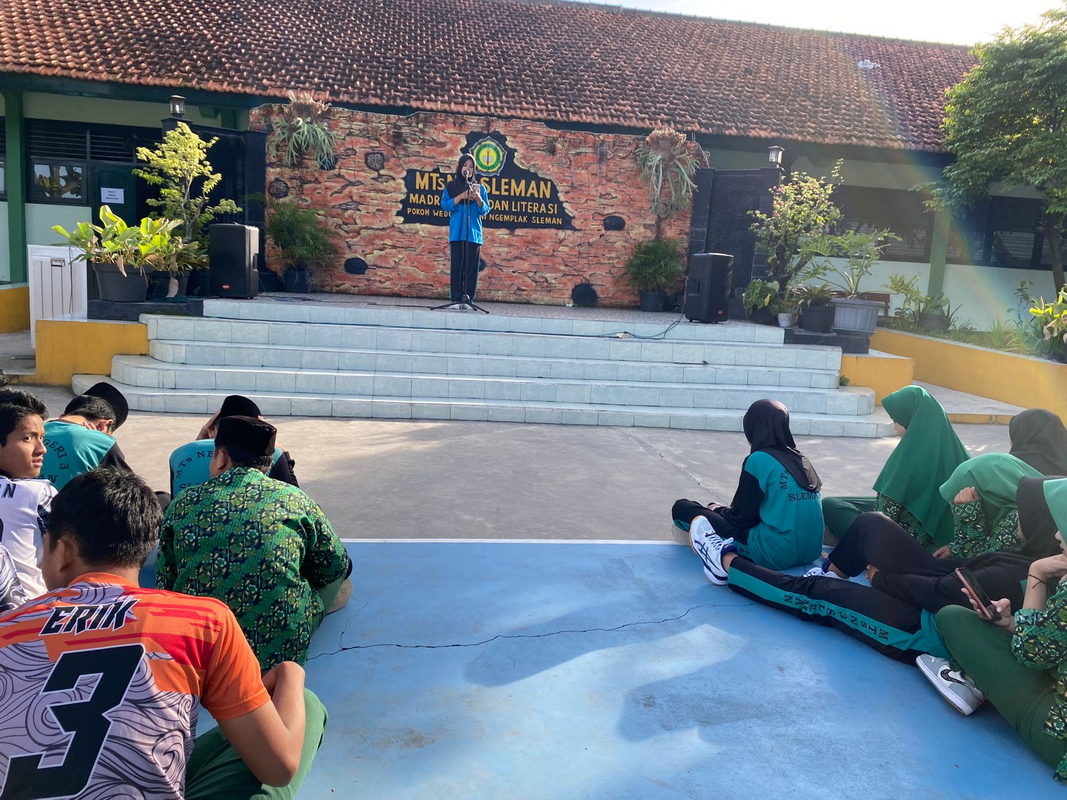 Kemenag Sleman News (MTs N 3 Sleman) — Usai pelaksanaan ASAT, MTs N 3 Sleman selenggarakan classmeeting untuk mewadahi bakat dan kreativitas para siswanya. Kamis (19/6/2025) kepala MTs N 3 Sleman membuka acara classmeeting di halaman madrasah saat apel pagi. “Saya ucapkan terima kasih dan apresiasi untuk kegitan ini juga untuk anak-anak. Ikuti kegitan dengan baik dan jaga sportivitas,” pesan Kamad saat dalam sambutannya.
