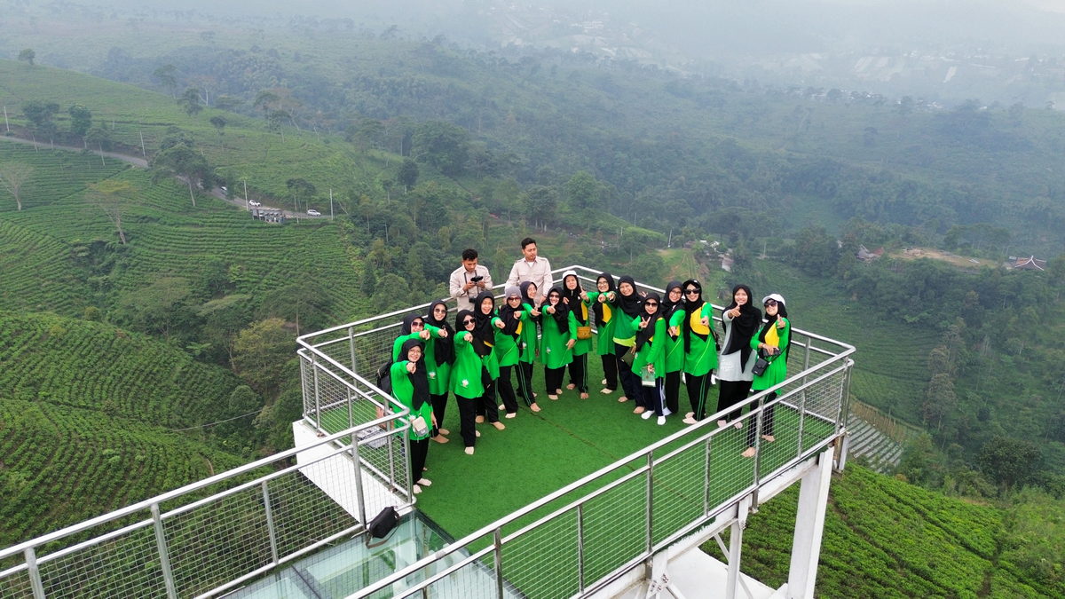 Setelah puas menikmati keindahan alam dari ketinggian, kegiatan dilanjutkan dengan menyusuri hamparan kebun teh yang sejuk. Suasana alami dan udara segar menjadi latar sempurna untuk mempererat kebersamaan antar civitas madrasah. Beberapa peserta juga memanfaatkan momen ini untuk membuat video kreatif dan konten dokumentasi kebersamaan.