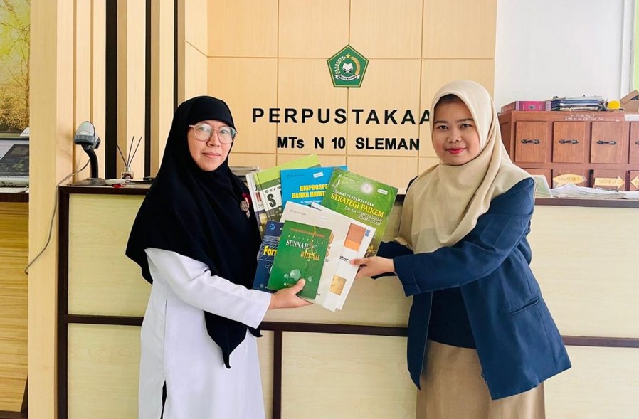 Baru-baru ini, Dinda Amelia, mahasiswa magister Pendidikan Bahasa dan Sastra Indonesia (PBSI) Universitas Negeri Yogyakarta (UNY), mewakafkan beberapa buku seputar ensiklopedia, pengetahuan umum, dan keagamaan. Ia terjun ke MTsN 10 Sleman untuk melakukan penelitian tugas akhir . “Terima kasih, Mbak Dinda. Semoga bermanfaat,” ujar Marfiah saat menerima buku tersebut pada Selasa (22/7/2025).