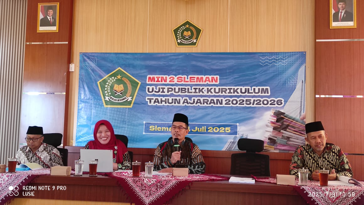Kemenag Sleman News (MIN 2 Sleman) – MIN 2 Sleman melaksanakan uji publik kurikulum tahun ajaran 2025-2026 pada Kamis (31/7/25) di meeting room lantai 3. Uji publik kurikulum diikuti oleh keluarga besar MIN 2 Sleman yang meliputi kepala madrasah, guru, pegawai, komite, wali murid, pengawas madrasah, dan seluruh elemen yang berkaitan.