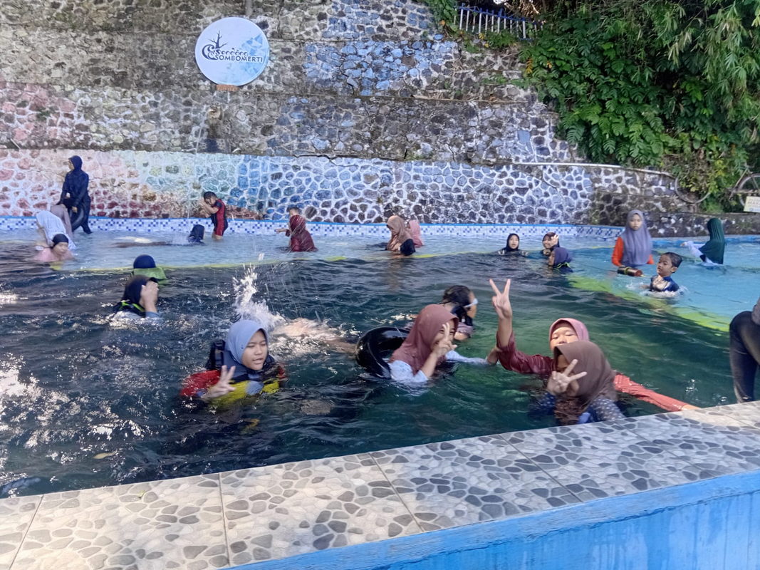 Santri Boarding MTsN 9 Sleman Nikmati Kegiatan Berenang Bersama di Sendang Sombomerti