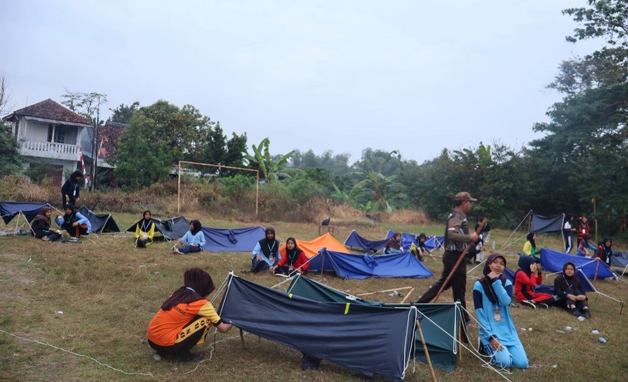 Suasana latihan berlangsung penuh semangat. Peserta merasa antusias menyelesaikan tugas mereka. Beberapa regu terlihat cekatan dalam membagi peran, sementara regu lain berusaha lebih teliti memastikan kekencangan pasak dan kelurusan tiang tenda. Sorak-sorai semangat kerap terdengar ketika tenda mereka akhirnya berdiri tegak.