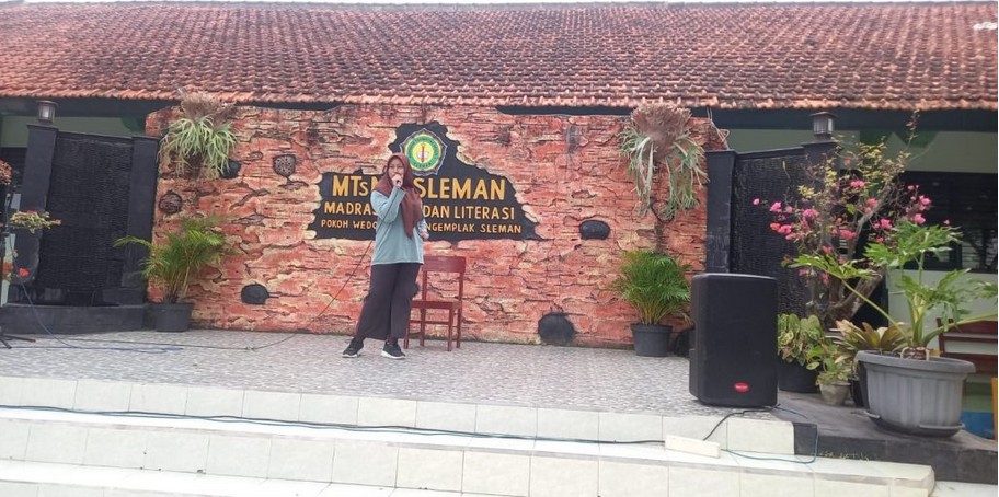 Kemenag Sleman News (MTs Negeri 3 Sleman) – Valerie, siswi kelas 7B MTs Negeri 3 Sleman, berhasil memukau seluruh hadirin saat tampil dalam acara Matsanega Got Talent pada Jumat (8/8/2025). Acara ini digelar di lapangan sekolah dan dihadiri oleh para siswa, guru, serta pegawai MTs Negeri 3 Sleman. Valerie tampil membawakan lagu “Sesuatu di Jogja” yang langsung mencuri perhatian sejak ia menyapa audiens dengan pertanyaan, “Kalian tau gak sih kalian tinggal di mana? Kota yang penuh kenangan.”