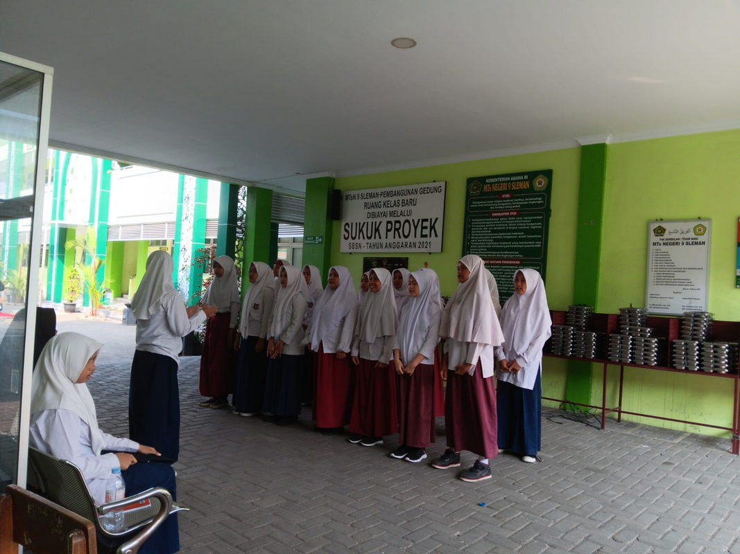 Kemenag Sleman News (MTsN 9 Sleman) – Pada Senin (11/8/2025) siswa MTsN 9 Sleman melakukan latihan paduan suara di lobi madrasah dalam rangka persiapan peringatan Hari Ulang Tahun ke-80 Republik Indonesia yang jatuh pada hari Minggu 17 Agustus 2025 mendatang. Latihan ini dibimbing langsung oleh guru Seni Budaya yakni Ami Solichati. Tujuannya untuk memastikan kesiapan dan keterampilan siswa dalam membawakan lagu-lagu patriotik saat upacara.