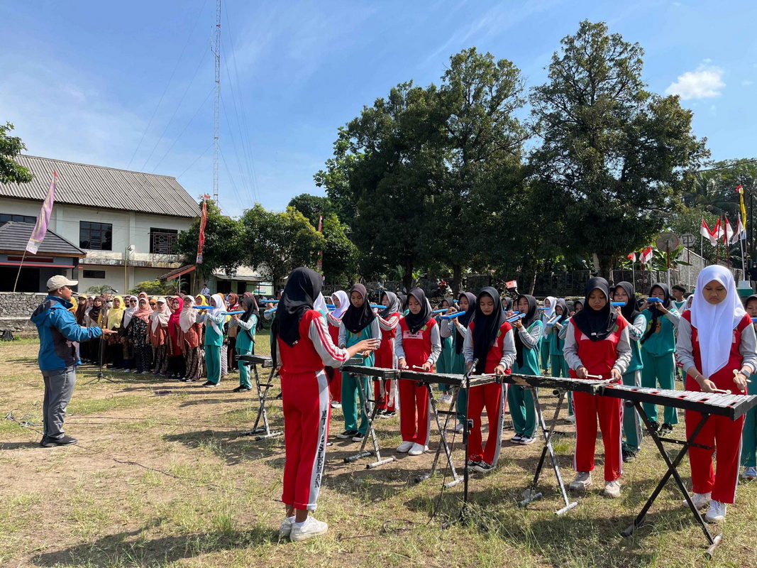 Kegiatan dimulai dengan pemanasan dan penyelarasan tempo antara drum band dan paduan suara. Para personel drum band yang terdiri dari siswa-siswi MTsN 2 Sleman tampak antusias mengikuti arahan pelatih, sementara paduan suara guru-guru mempersiapkan harmonisasi lagu-lagu kebangsaan yang akan dibawakan pada upacara nanti.