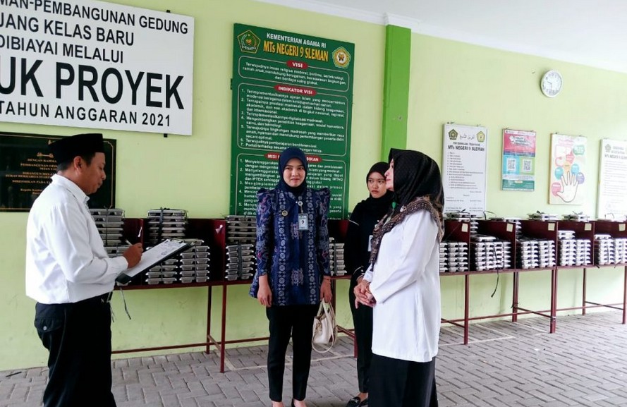 Kemenag Sleman News (MTsN 9 Sleman)— Kepala Seksi Penyediaan dan Pengolahan Gizi (SPPG) Lanud Adisucipto, Ibu Dea bersama tim melakukan pemantauan program Makan Bersama Gizi (MBG) di MTsN 9 Sleman pada Selasa (12/8/2025). Dalam kegiatan ini, Dea tidak hanya memastikan kualitas gizi makanan yang disajikan, tetapi juga melakukan pendataan siswa yang memiliki alergi terhadap makanan tertentu.