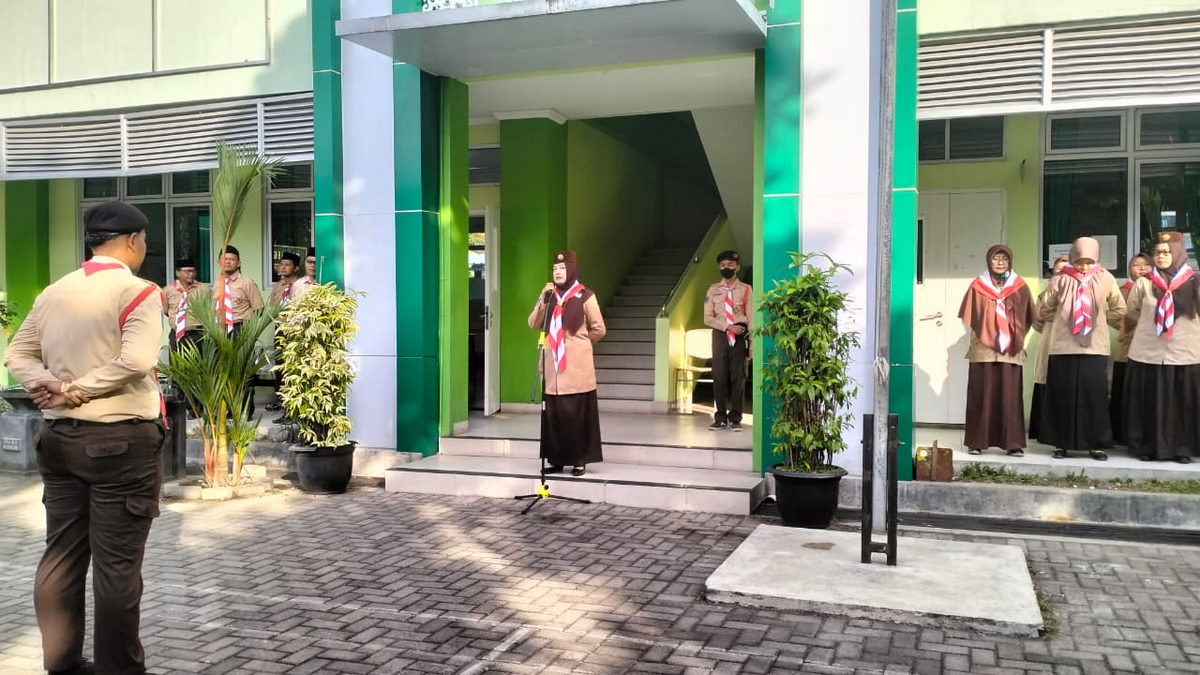 Kepala MTsN 9 Sleman Bacakan Sambutan Ketua Kwartir Nasional dalam Upacara Peringatan Hari Pramuka ke 64