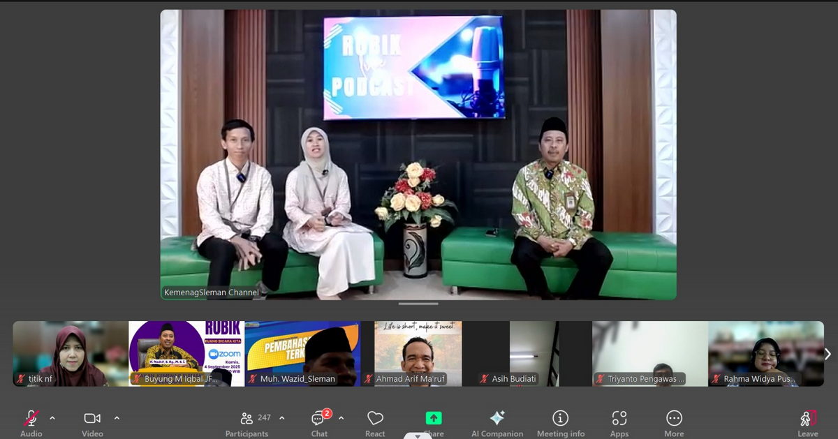 Kemenag Sleman News – Kepala Kantor Kementerian Agama Kabupaten Sleman H. Nadhif, S.Ag, M.SI hadir sebagai narasumber dalam podcast RUBIK (Ruang Bicara Kita) Edisi 58. RUBIK kali ini digelar Kamis (4/9/2025) pagi secara virtual melalui ruang zoom meeting dan mengusung tema KanKemenag Sleman Menyapa.