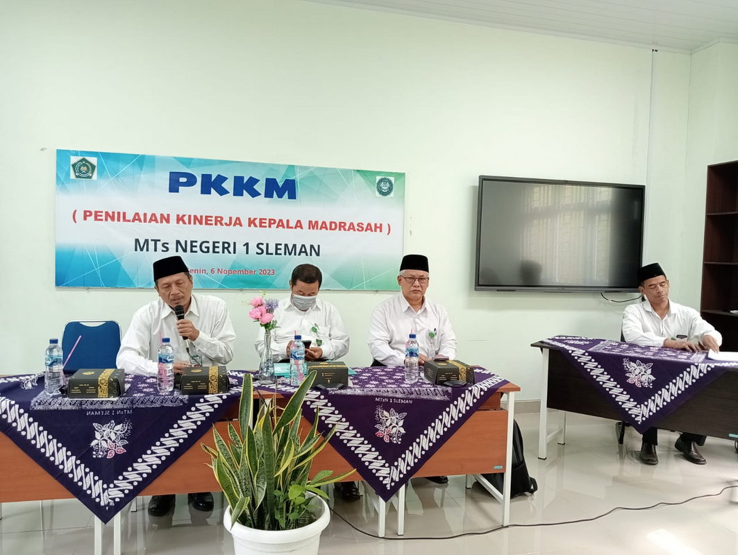 Sleman (MTsN 1 Sleman) – Bertempat di ruang digital MTsN 1 Sleman, Senin (6/11/2023) dilaksanakan PKKM (Penilaian Kinerja Kepala Madrasah) oleh tim penilai yang terdiri dari Mujiyono dan Daryono yang merupakan pengawas madrasah Kementerian Agama Kabupaten Sleman. Kegiatan PKKM diikuti oleh koordinator komponen dan dua orang perwakilan dari masing-masing komponen.