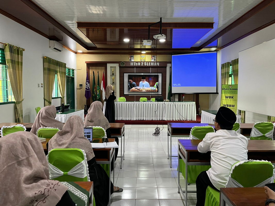 Kemenag Sleman News (MTsN 2 Sleman) — MTsN 2 Sleman mengikuti kegiatan Istighosah yang digelar oleh Kantor Kementerian Agama Kabupaten Sleman pada Kamis (4/9/2025). Kegiatan tersebut dilaksanakan secara live streaming dan diikuti oleh guru serta pegawai di aula MTsN 2 Sleman.