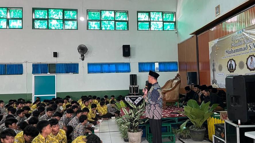 Kemenag Sleman News (MAN 5 Sleman) – Dalam rangka memperingati Maulid Nabi Muhammad SAW, MAN 5 Sleman menyelenggarakan pengajian pada Kamis (4/9/2025). Kegiatan yang bertema “Memaknai Maulid Nabi dengan Semangat Zaman yang Baru” ini diadakan di aula madrasah dengan penuh khidmat.
