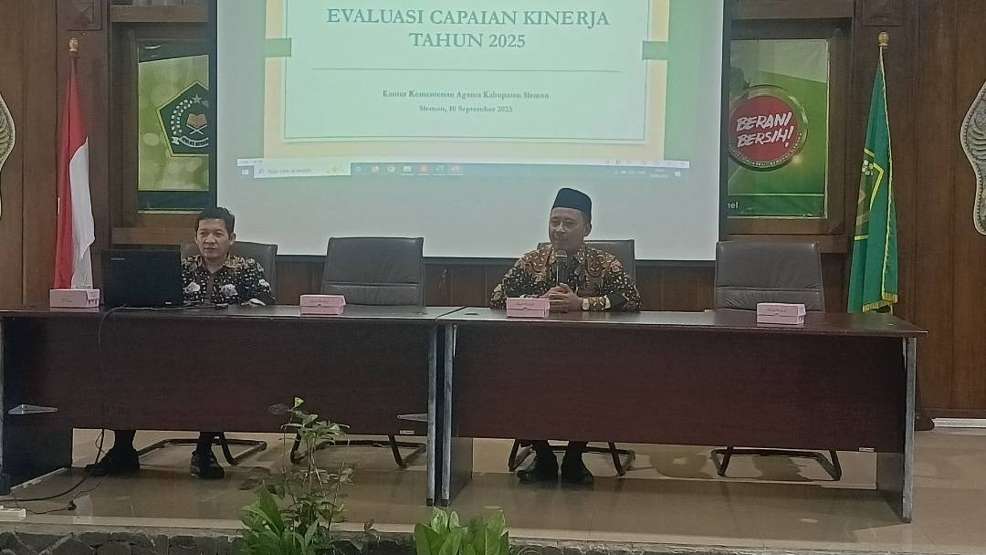 Kemang Sleman News – Kantor Kementerian Agama Kabupaten Sleman menegaskan komitmennya untuk menghadirkan birokrasi yang berdampak nyata bagi masyarakat. Hal itu ditegaskan dalam kegiatan Evaluasi Capaian Kinerja Tahun 2025 yang digelar di Aula Lantai 3 Kemenag Sleman, Rabu (10/9).