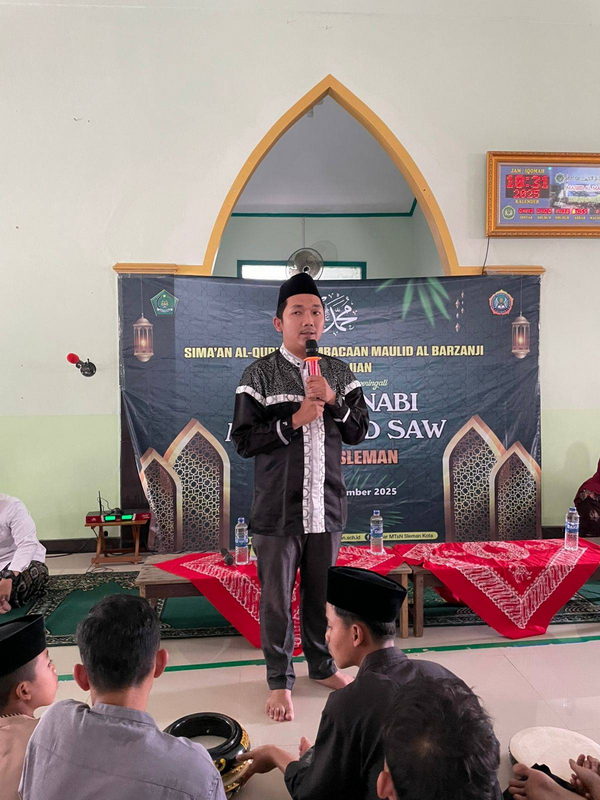 Kemenag Sleman News (MTsN 4 Sleman) – Dalam rangka memperingati Maulid Nabi Muhammad SAW, MTsN 4 Sleman menggelar rangkaian kegiatan meliputi simaan Al-Qur’an juz 29, pembacaan Maulid Al-Barzanji, pengajian, serta santunan untuk siswa yatim piatu Senin (8/9/2025). Suasana penuh khidmat tampak di lingkungan madrasah sejak pagi hingga acara berakhir.