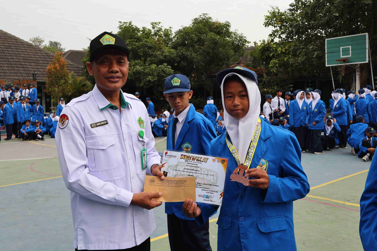 Sebagai bentuk apresiasi, MTsN 8 Sleman memberikan penghargaan kepada Keysa pada apel bendera Senin pagi (08/09/2025). Kepala MTsN 8 Sleman, Agus Sholeh, S.Ag., secara langsung memberikan apresiasi di hadapan seluruh guru, pegawai, dan siswa. Dalam sambutannya, beliau menyampaikan rasa bangga atas pencapaian siswi kelas 9D tersebut.