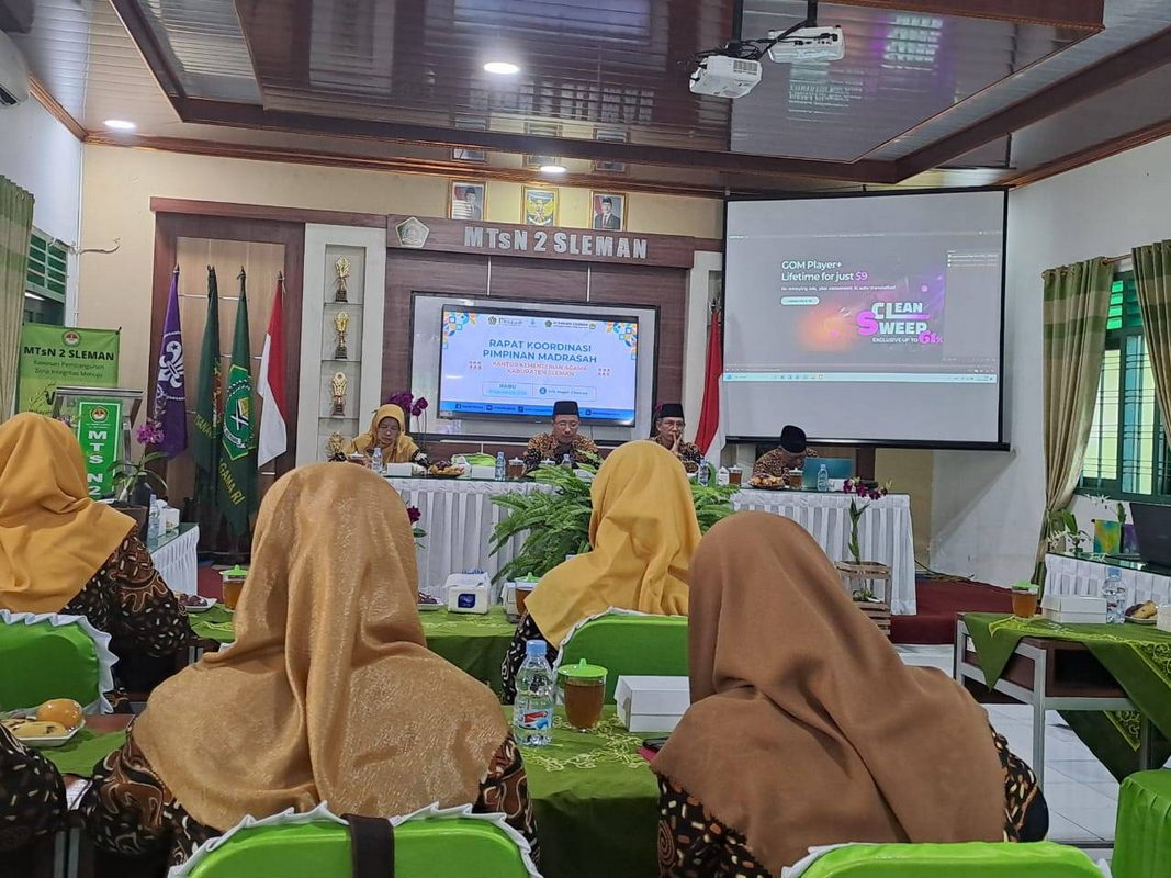 Kemenag Sleman News (MTsN 8 Sleman) – Dalam rangka memperkuat koordinasi dan sinergi antar pimpinan madrasah di Kabupaten Sleman, Kepala MTsN 8 Sleman, Agus Sholeh, S.Ag., bersama Kepala Tata Usaha, Aini Maslihatin, S.E., M.M., menghadiri Rapat Koordinasi Pimpinan (RAKORPIM) Madrasah yang diselenggarakan di MTsN 2 Sleman. Kegiatan ini diikuti oleh seluruh kepala madrasah negeri dan swasta serta jajaran pimpinan di bawah naungan Kementerian Agama Kabupaten Sleman.