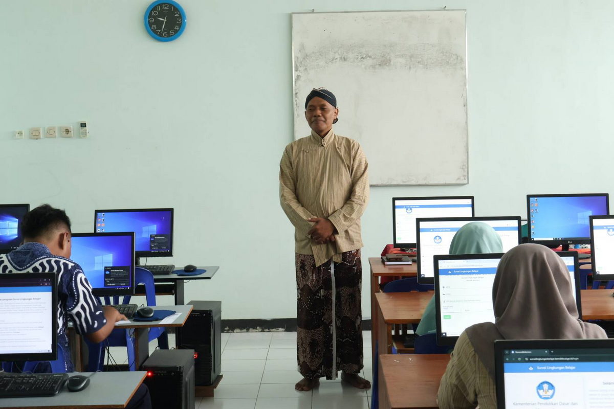 Kemenag Sleman News – (MTsN 8 Sleman) MTsN 8 Sleman menggelar briefing usai pelaksanaan Sulingjar (Survei Lingkungan Belajar) pada Kamis (18/9/2025) di Laboratorium Komputer madrasah. Briefing dipimpin langsung oleh Kepala MTsN 8 Sleman, Agus Sholeh, S.Ag., dan diikuti oleh seluruh guru serta pegawai. Suasana berlangsung tertib, penuh perhatian, dan menjadi sarana penyampaian arahan penting terkait tugas dan tanggung jawab.