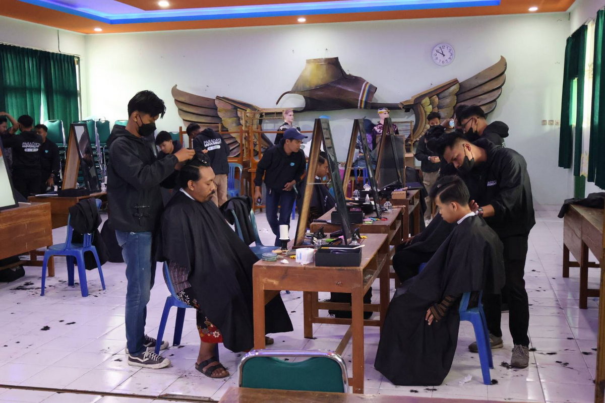 Potong Rambut Gratis, MTsN 8 Sleman Kembali Jalin Kerja Sama dengan Arfa Barbershop