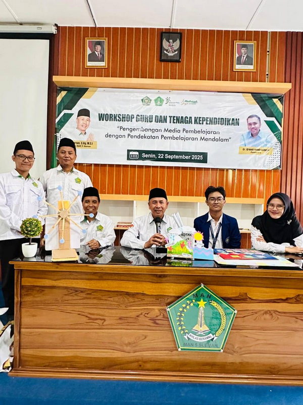 Kemenag Sleman News, Senin 22 September 2025 – Madrasah Aliyah Negeri (MAN) 5 Sleman kembali menyelenggarakan kegiatan peningkatan kompetensi guru melalui Workshop Pengembangan Media dengan Pendekatan Pembelajaran Mendalam. Acara ini diikuti oleh guru, tenaga kependidikan (tendik), serta mahasiswa Praktik Kependidikan dari Universitas Negeri Yogyakarta (UNY).