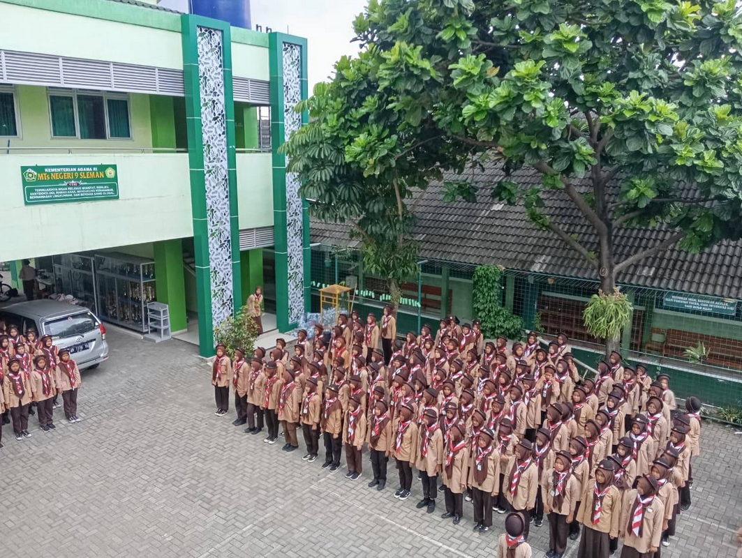 Kemenag Sleman News (MTsN 9 Sleman) – Dalam rangka membentuk generasi muda yang berkarakter dan berjiwa kepemimpinan, MTsN 9 Sleman rutin menggelar kegiatan ekstrakurikuler Pramuka setiap hari Kamis. Agenda pramuka kali ini adalah pengumuman seleksi Dewan Penggalang. Kegiatan ini digelar pada Kamis sore (25/9/2025). Kegiatan ini berlangsung dengan khidmat di halaman madrasah dan diikuti oleh seluruh anggota pramuka kelas VII, VIII serta jajaran Pembina Pramuka MTsN 9 Sleman.