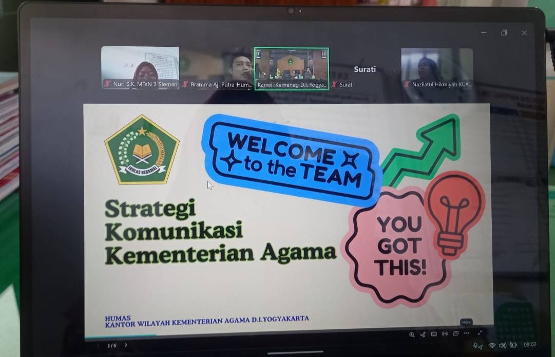 Kemenag Sleman News (MTsN 3 Sleman) – Dalam rangka meningkatkan kualitas publikasi dan penyebaran informasi, Kantor Wilayah Kementrian Agama DI Yogyakarta menyelenggarakan Penguatan Kapasitas Kehumasan bagi PIC Berita Satuan/Unit Kerja secara Hybrid. Dengan peserta terdiri dari PIC Berita Bidang/Bimas, PPPK Pratana Humas Kanwil dan Kankemenag Kab/Kota yang hadir langsung di Ruang Rapat PTSP Kanwil Kemenag DIY serta ada pula peserta yang hadir secara online melalui Zoom trediri dari PIC Berita/tenaga kehumasan madrasah negeri/swasta dan PIC berita KUA.