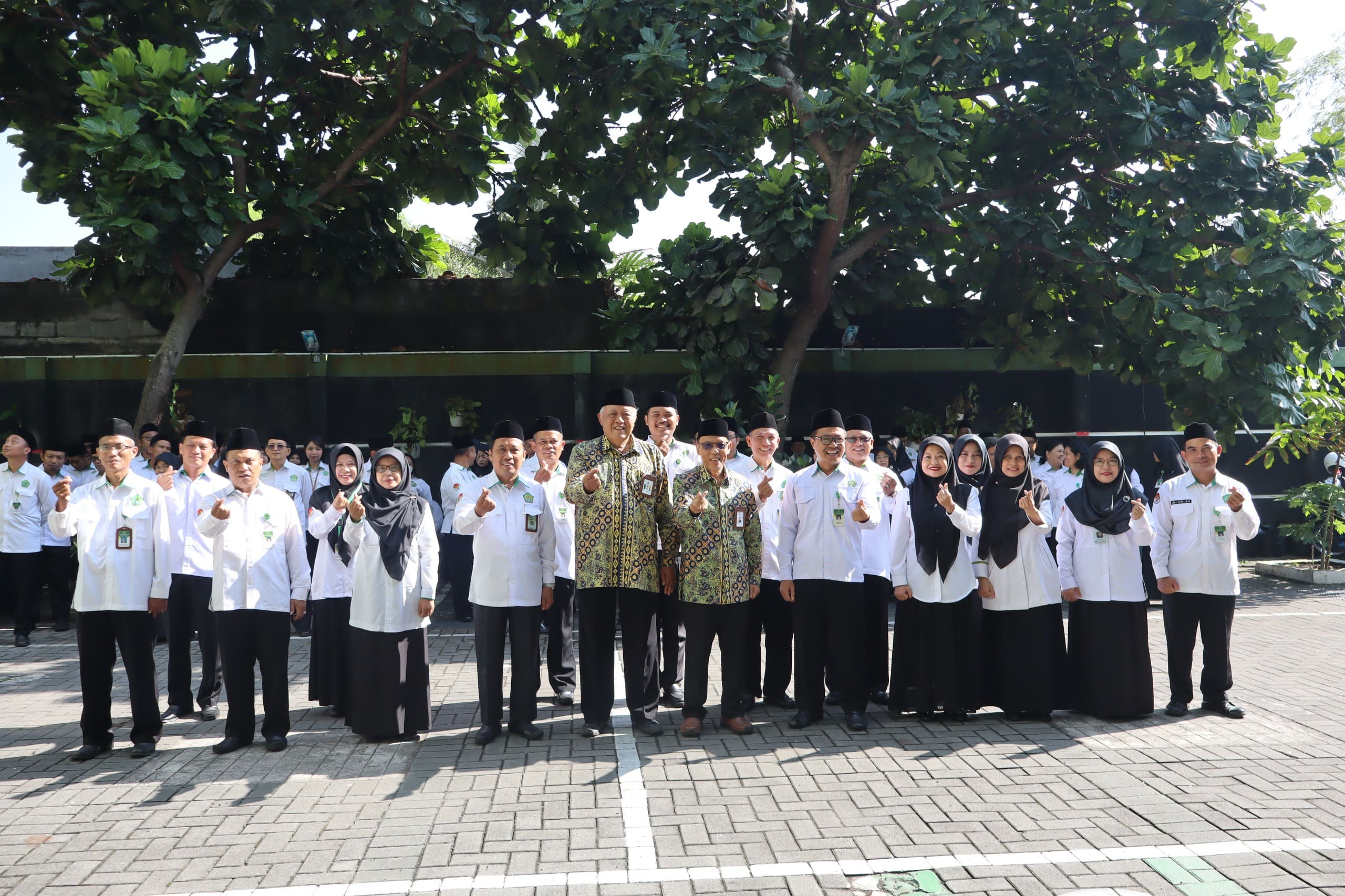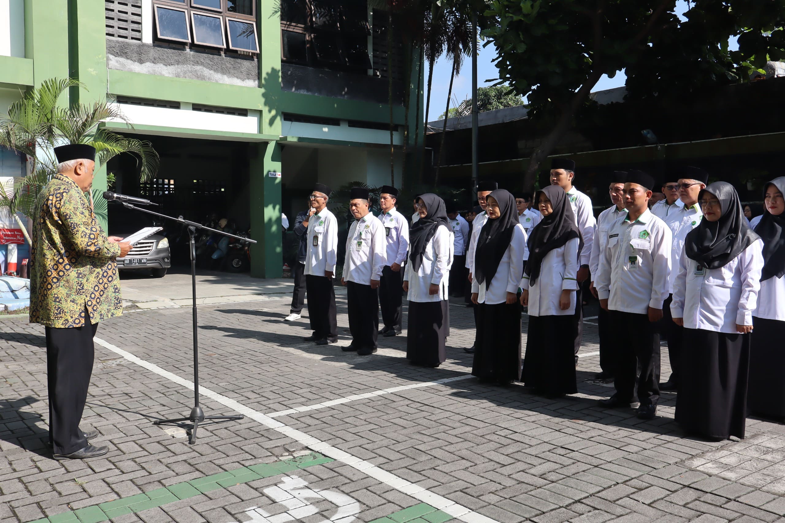 Kegiatan apel yang diikuti seluruh pegawai dan jajaran pimpinan ini dipimpin oleh *Ali Sofha, S.Ag., Pengawas Madrasah Kemenag Sleman, selaku pembina apel. Dalam amanatnya, ia menekankan pentingnya *doa dan usaha yang seimbang dalam menjalankan tugas, agar pelayanan kepada masyarakat senantiasa dilandasi nilai keikhlasan dan profesionalisme.