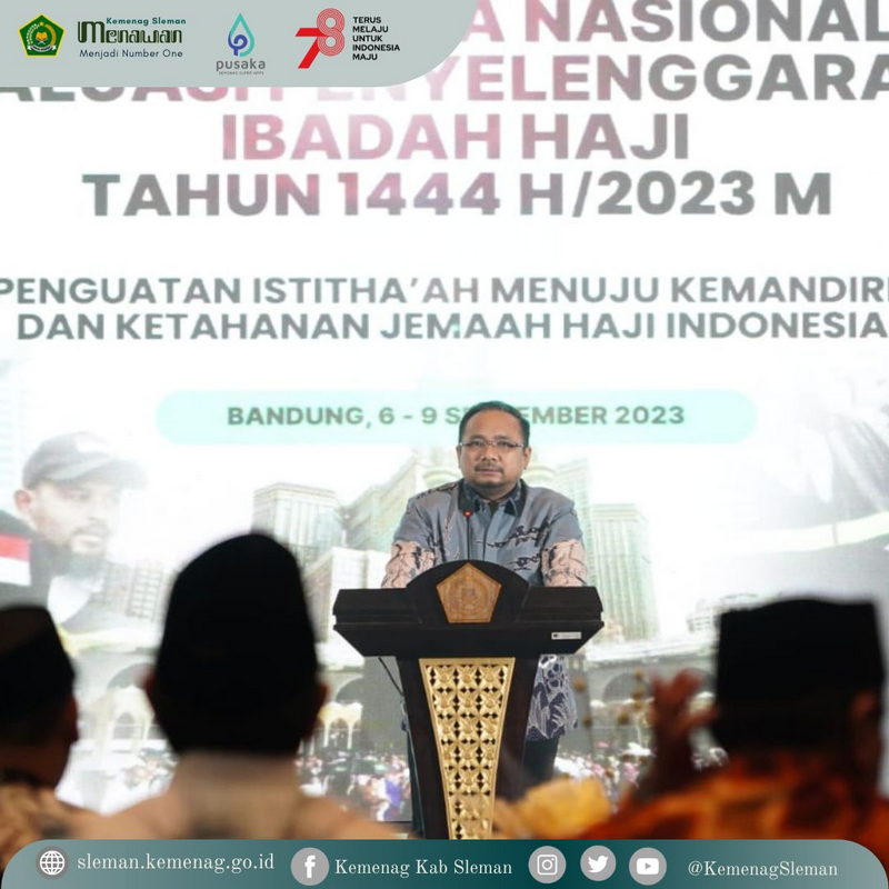 Bandung (Humas Kemenag Sleman) – Direktorat Jenderal Penyelenggaraan Haji dan Umrah (PHU) Kemenag menggelar Rakerna Evaluasi Penyelenggaraan Ibadah Haji 1444 H/2023 M. Menag Yaqut Cholil Qoumas meminta agar skema penetapan istithaah kesehatan jemaah haji dimatangkan.