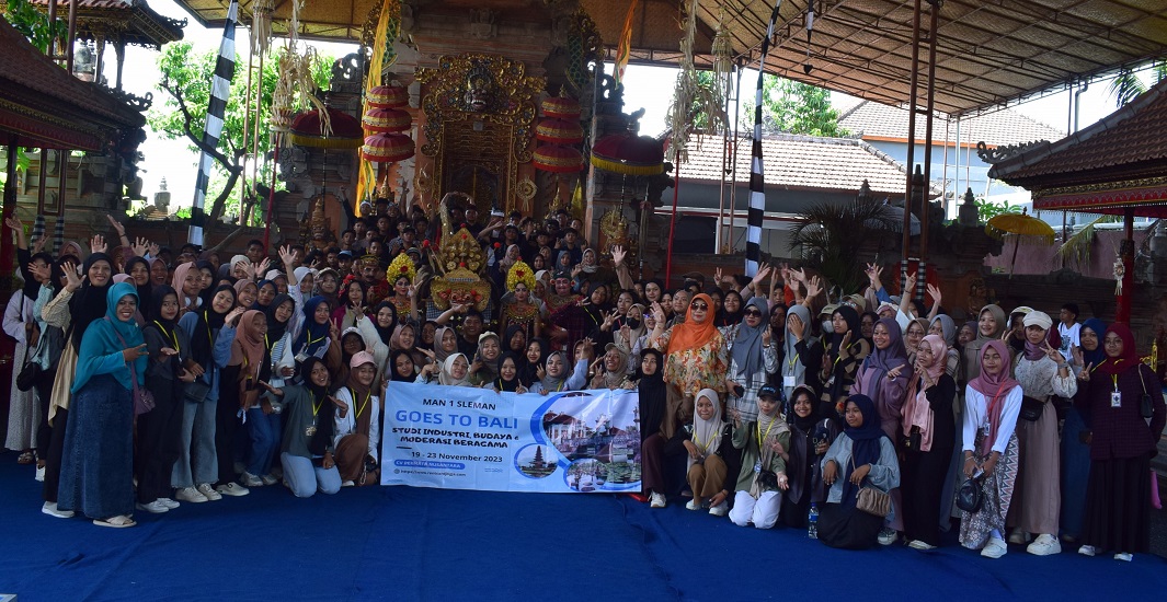 Bali (MAN 1 Sleman) – Sebagai upaya untuk menguatkan moderasi beragam di kalangan siswa Man 1 Sleman, madrasah mengadakan Studi Budaya dan Moderasi Beragama. Kegiatan tersebut dilaksanakan di Pulau Bali. Rombongan yang terdiri dari siswa kelas XI dan guru pendamping berangkat dari madrasah Minggu, 19 November 2023 dan kembali pada Jumat, 24 November 2023.