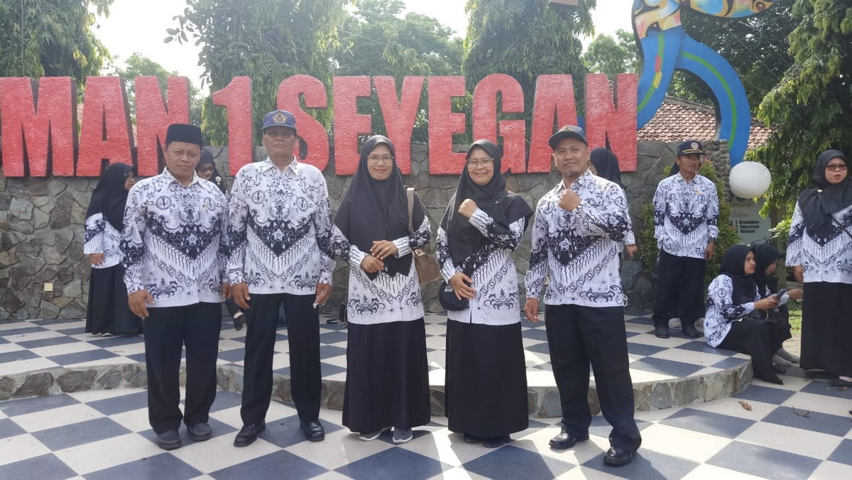 Sleman (MTsN 1 Sleman) – Mulyono, Sukardi, Asep, Budi Hartati, dan Feti Stiati guru MTsN 1 Sleman mengikuti upacara dalam rangka memperingati Hari Guru Nasional (HGN) yang digelar oleh pengurus PGRI Kapanewon Seyegan, Sabtu (25/11/2023). Kegiatan yang bertempat di lapangan upacara SMAN Seyegan diikuti oleh kepala sekolah dan guru TK/RA, SD/MI, SMP/MTs, SMA/SMK, Kapolsek, dan Danramil se Kapanewon Seyegan.