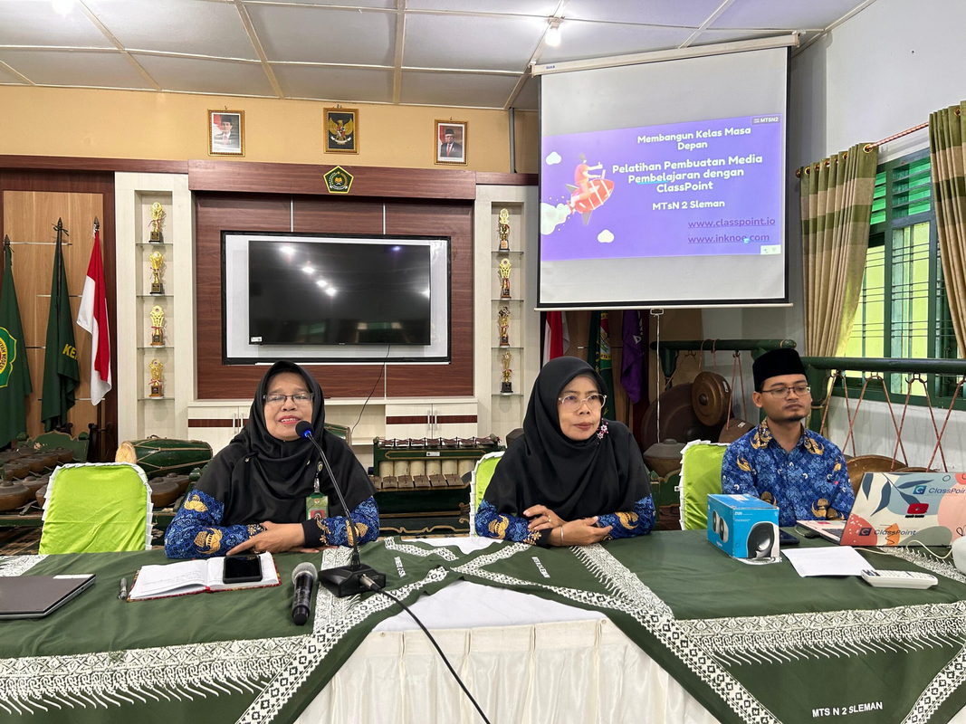 Sleman (MTsN 2) â Madrasah Tsanawiyah Negeri 2 Sleman menyelenggarakan pelatihan Classpoint di ruang aula pada Rabu/11/2023). Acara ini dihadiri oleh para guru dan staf madrasah, dengan narasumber utama Sutanto, S.Pd.Si., seorang guru IPA yang berpengalaman sebagai narasumber classpoint tingkat nasional.