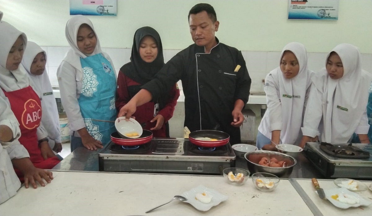 Rosman Sabar, chef UC Hotel mengatakan bahwa kegiatan ini penting dilaksanakan agar saat PKL nanti siswa sudah mempunyai kompetensi yang sesuai dengan standar hotel. “Saya berikan dua materi dasar yaitu metode cutting dan dasar-dasar teknik pengolahan,” ungkapnya. Selain itu chef Sabar melatih siswa dalam berbagai teknik mengolah telur. “Saya senang melatih anak-anak ini, mereka sangat antusias dan semangat dalam belajar, Semoga nanti semakin banyak ilmu yang mereka dapatkan saat PKL,” ucapnya.