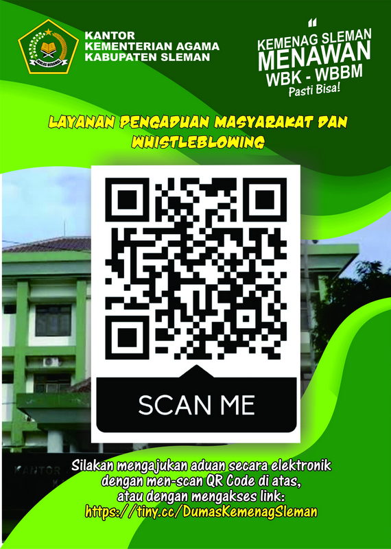 Pengaduan Masyarakat (DUMAS) adalah sumbangan pikiran, saran, gagasan dan keluhan yang disampaikan masyarakat yang bermanfaat bagi perbaikan penyelenggaraan pelayanan masyarakat ataupun berupa informasi tentang adanya indikasi terjadinya penyimpangan atau penyalahgunaan wewenang yang dilakukan oleh ASN di lingkungan Kantor Kementerian Agama Kabupaten Sleman sehingga mengakibatkan kerugian masyarakat atau negara.