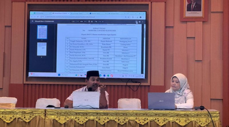 SelengkapnyaKemenag Sleman News (MAN 3Β Sleman)Β β MAN 3 Sleman menggelar rapat koordinasi pimpinan (Rakorpim) Madrasah pada Senin (5/1/2025) bertempat di Ruang