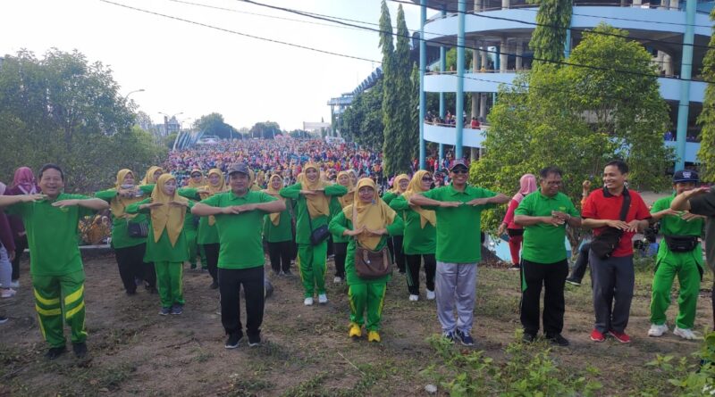 SelengkapnyaSleman (MTsN 4 Sleman) β Suasana Stadion Maguwoharjo Sleman tampak ramai dengan kehadiran ribuan orang guru yang mengikuti senam massal,