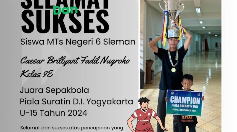 SelengkapnyaKemenag Sleman News (MTsN 6 Sleman) — Salah satu siswa MTs Negeri 6 Sleman, Caesar Brillyant Fadil Nugroho kelas IX