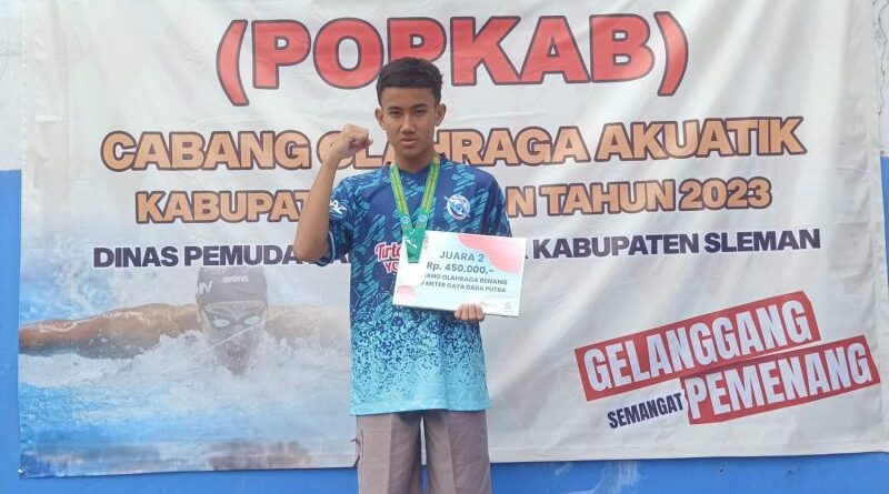 SelengkapnyaSleman (MTsN 6 Sleman)–Kaisar Fawwaaz Akbar kelas 7 MTsN 6 Sleman kembali meraih medali perak di Kejurkab Sleman. Nomor Gaya