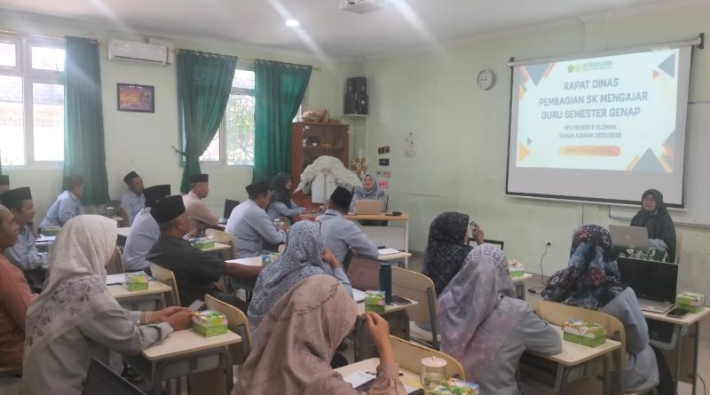 SelengkapnyaKemenag Sleman News (MTsN 9 Sleman) – MTsN 9 Sleman mengadakan rapat dinas pembagian Surat Keputusan (SK) Mengajar Guru Semester